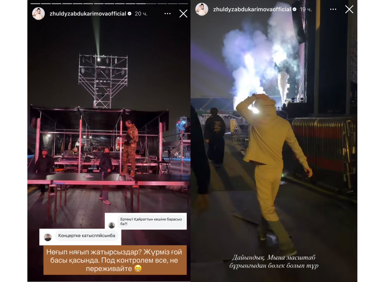 Телеведущая также показала закулисные моменты подготовки концерта, который пройдет на Центральном стадионе Алматы. Судя по опубликованным кадрам, зрителей ждут яркие визуальные эффекты и масштабное шоу.