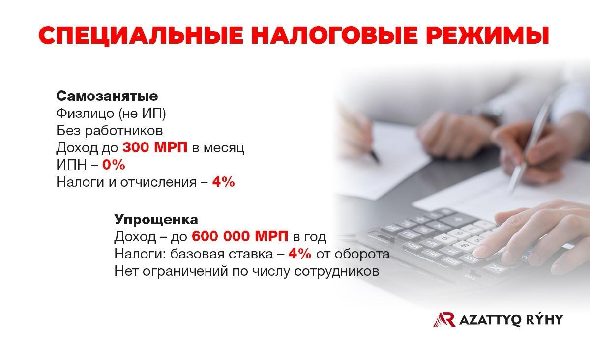 Это возможность легализовать доход без лишней бюрократии и страхов. Он создан специально для тех, кто работает сам на себя: репетиторов, мастеров, курьеров, таксистов, фрилансеров и других специалистов. Здесь главное условие – вы работаете в одиночку, без найма персонала и ваш доход не превышает 1,3 млн тенге в месяц. Взамен вы получаете простой налог: всего 4% от дохода. Эта сумма уже включает подоходный налог, пенсионные и соцотчисления, а также медицинскую страховку. Все платится одним платежом. И важный нюанс – регистрировать ИП при этом режиме не нужно.