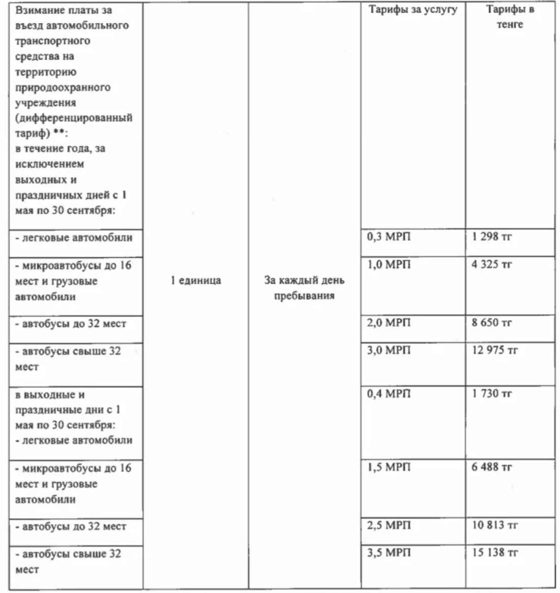 Дирекция Государственного национального природного парка «Бурабай» сообщила об изменении тарифов на въезд автомобильных транспортных средств на территорию парка, передает Azattyq Rýhy.