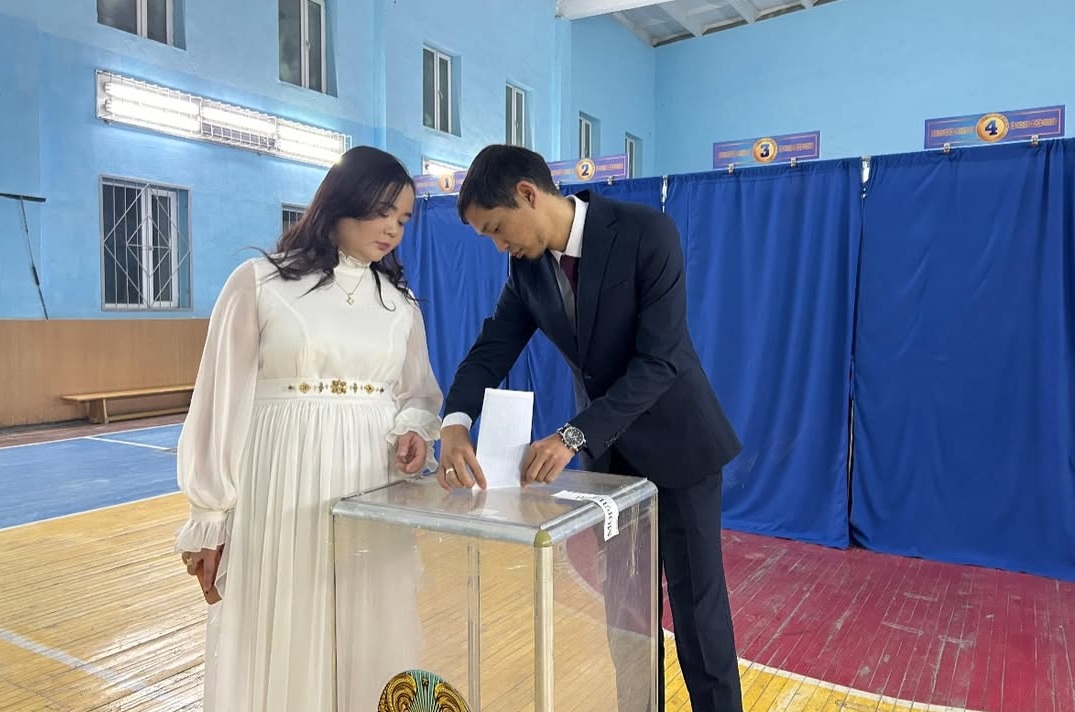 В Мангистауской области молодая супружеская пара — Аскарбек Чогданбаев и Наурызгуль Тажедин — совместно сделала свой выбор на участке №203.