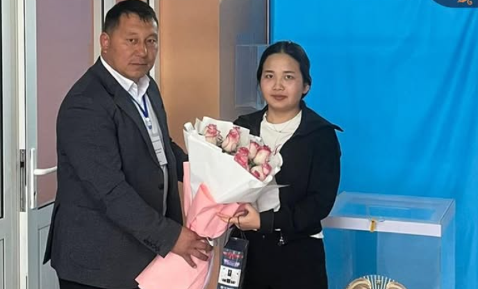 В Арыси именинница Айкумис Карим впервые проголосовала в свой день рождения. Молодой избиратель получила символический подарок и цветы от членов участка, что сделало этот день памятным началом гражданской активности.