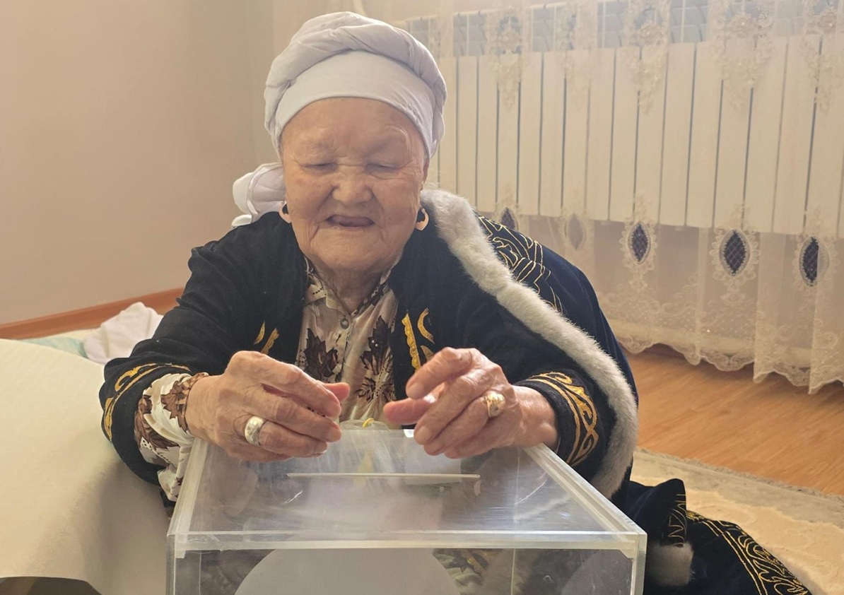 Сегодня, 15 марта, на проходящем в стране республиканском референдуме 104-летняя бабушка Сырга Калиева сделала свой выбор, передает Azattyq Rýhy со ссылкой на акимат Маангистауской области.