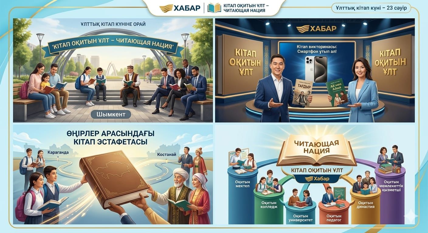 В преддверии Национального дня книги, который отмечается 23 апреля, телеканал «Хабар» совместно с общественным фондом «Кітап оқитын ұлт – Читающая нация» объявили о старте специального медиапроекта, передает Azattyq Rýhy.