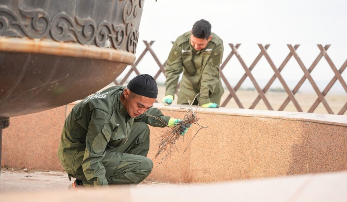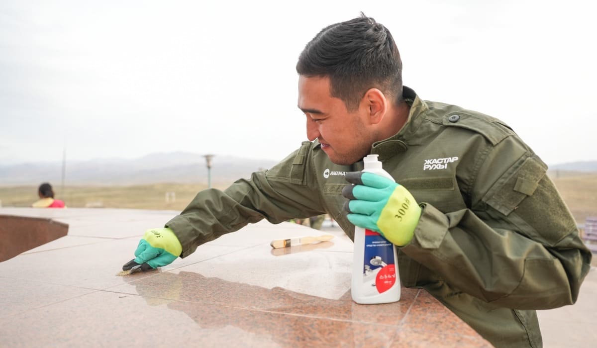 Борьба с вандализмом: молодежь «Жастар Рухы» привела в порядок мемориальный комплекс «Тұлғалар тұғыры»