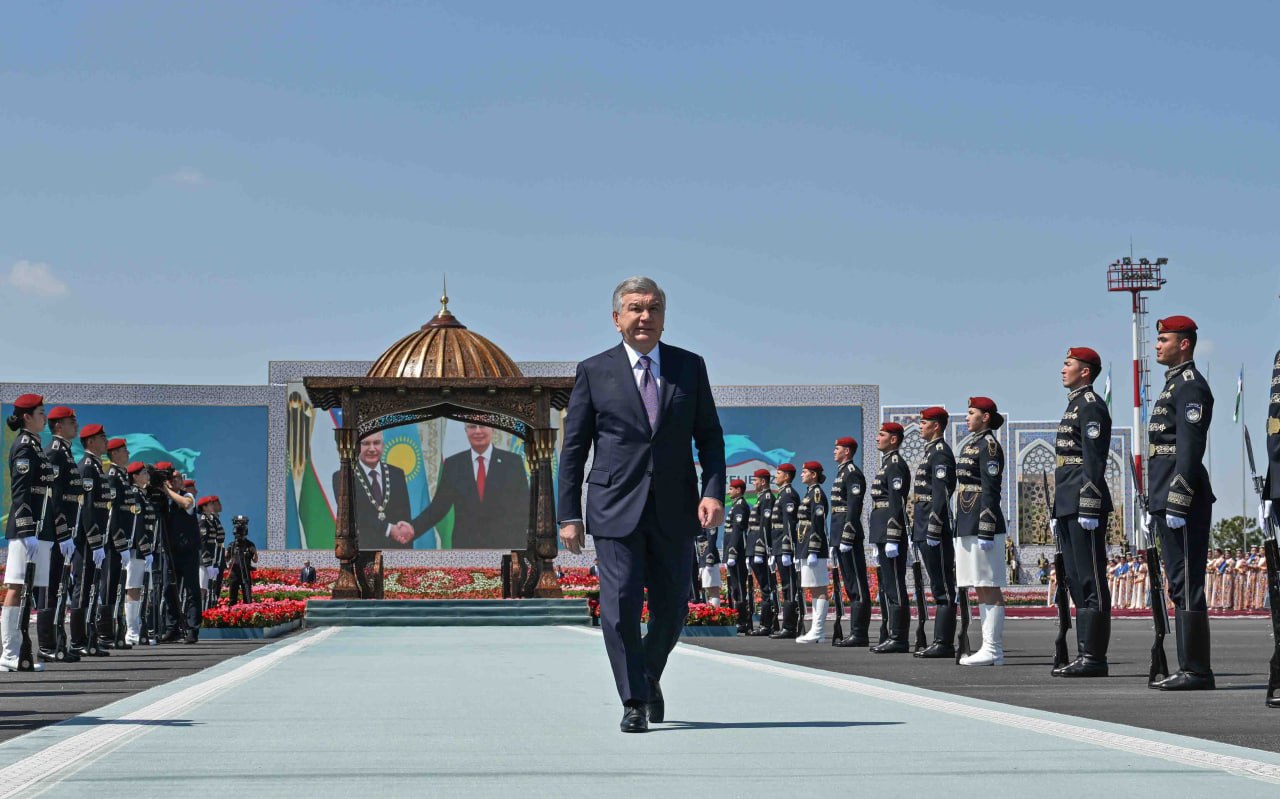 В аэропорту Бухары высокого гостя встретил президент Узбекистана Шавкат Мирзиёев.