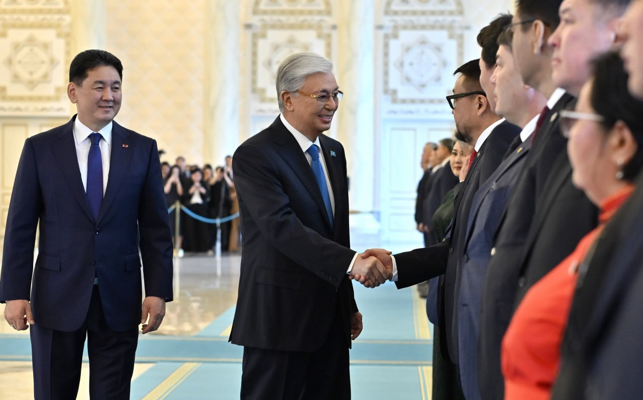 Касым-Жомарт Токаев и Ухнаагийн Хурэлсух представили друг другу членов официальных делегаций.