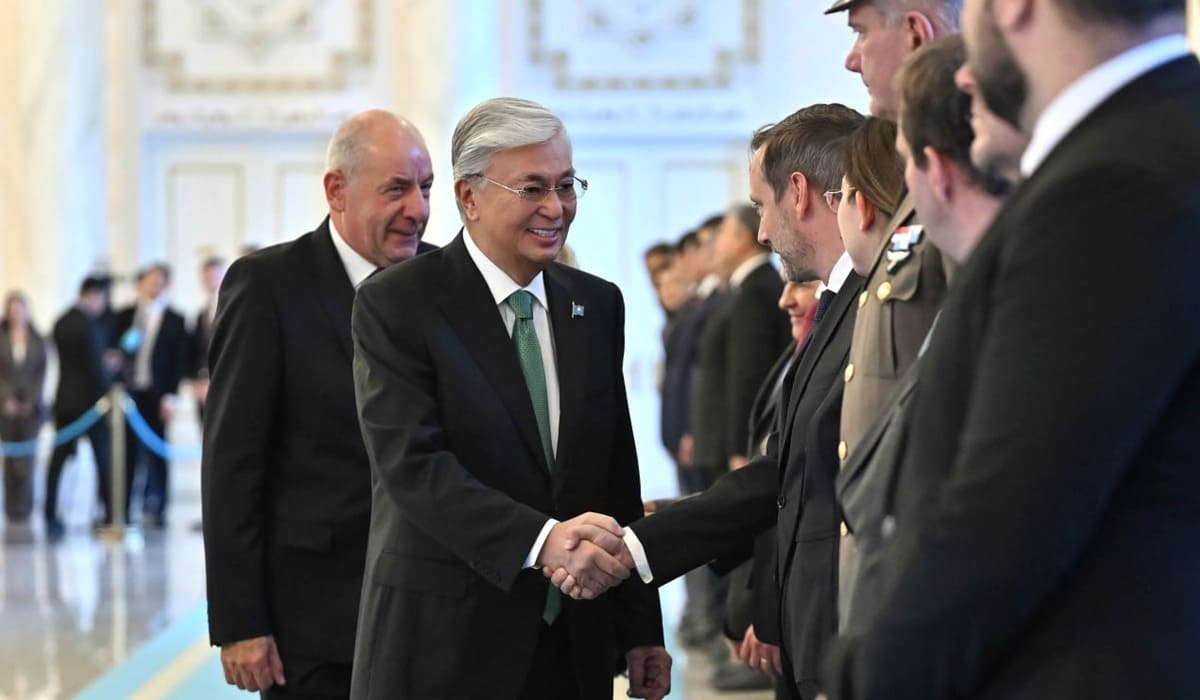 Встреча состоялась в резиденции Акорда, где главы государств обменялись приветствиями на фоне почетного караула.