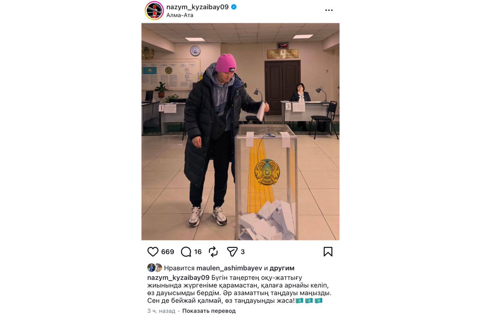 Бронзовый призер Олимпийских игр в Париже Назым Кызайбай проголосовала на референдуме. В своем Instagram боксерша сообщила, что проголосовала на избирательном участке № 168, расположенном в Алматинском колледже автомобильной и модной индустрии.