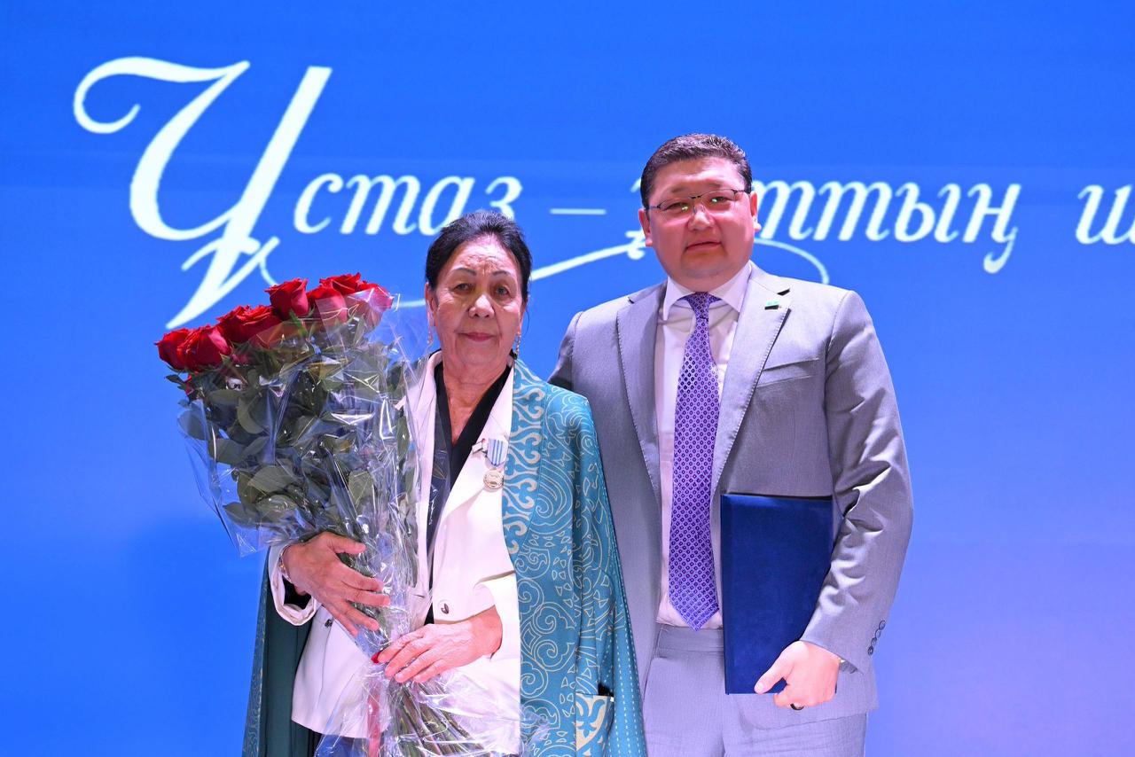 Особое внимание было уделено акции «Ұстазға алғыс!», проходящей по инициативе Министерства просвещения. В её рамках аким области поздравил с профессиональным праздником свою наставницу Зайтуну Мукажанову, ныне проживающую в Астане.
