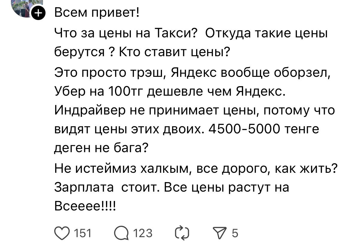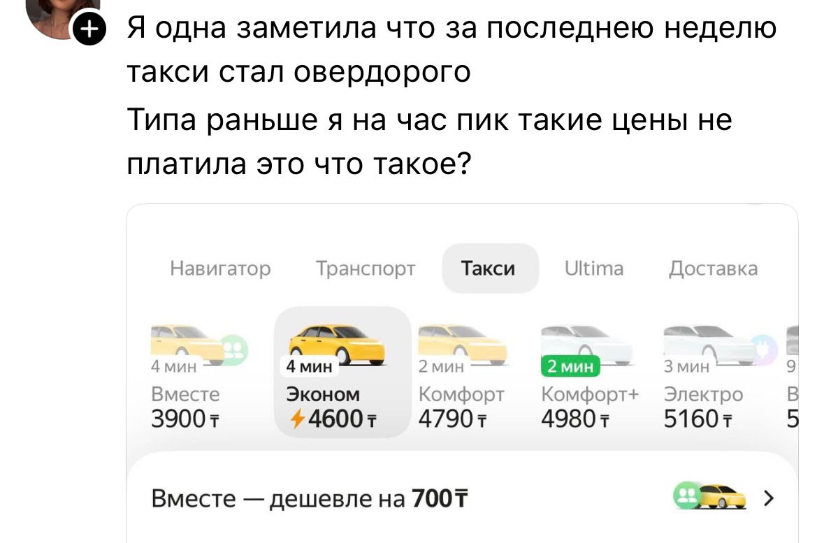 Как только начинает моросить дождь, пойдет снег или наступают морозы – казахстанцы в соцсетях жалуются: цены на такси снова взлетели. В свою очередь водители сетуют на несправедливые комиссии и чаще всего – именно «Яндекс.Такси», так как агрегатор является крупнейшим в стране. Обещания урегулировать этот вопрос звучат уже не первый год. Тем не менее, тарифы остаются высокими, а система ценообразования - непрозрачной. Azattyq Rýhy направил официальный запрос в Агентство по защите и развитию конкуренции, чтобы узнать, как регулируется деятельность сервиса «Яндекс.Такси», который доступен во всех регионах Казахстана, и какие меры предпринимаются, чтобы защитить интересы пассажиров и водителей.