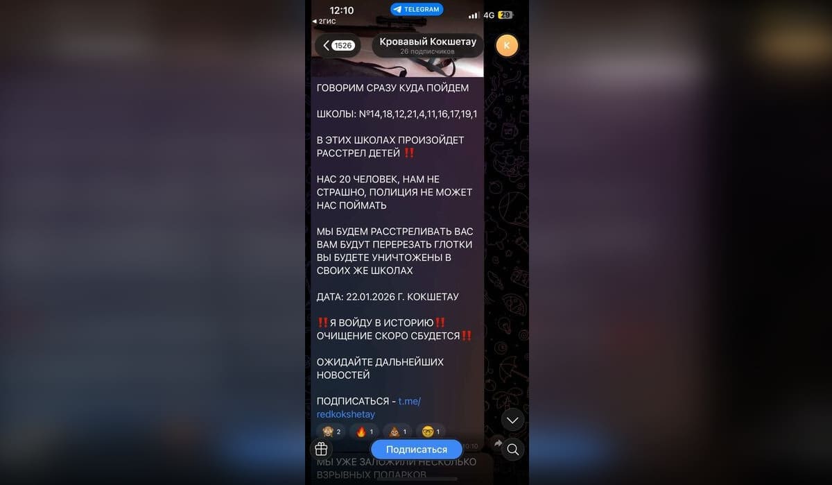 В социальных сетях распространяется сообщение о якобы планируемом нападении на учебные заведения города Кокшетау. Информацию прокомментировали в полиции Акмолинской области, передает Azattyq Rýhy.
